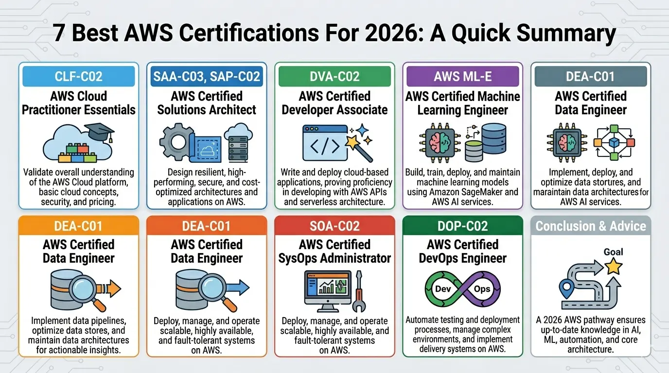 The best AWS certifications for 2026 include the AWS Cloud Practitioner, AWS Certified Solutions Architect, and the AWS Certified Developer Associate. With cloud computing continuing to dominate the tech industry, earning these credentials is the smartest way to grab high-paying opportunities and future-proof your career right now.